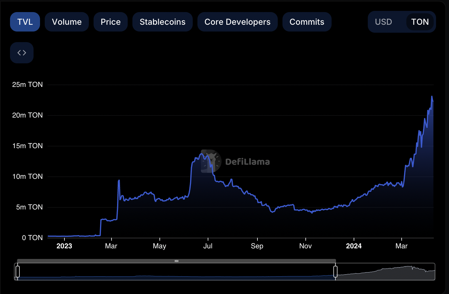 TON Blockchain TVL. Kaynak: Defi Lama